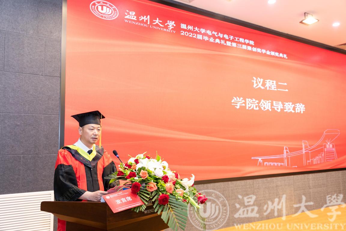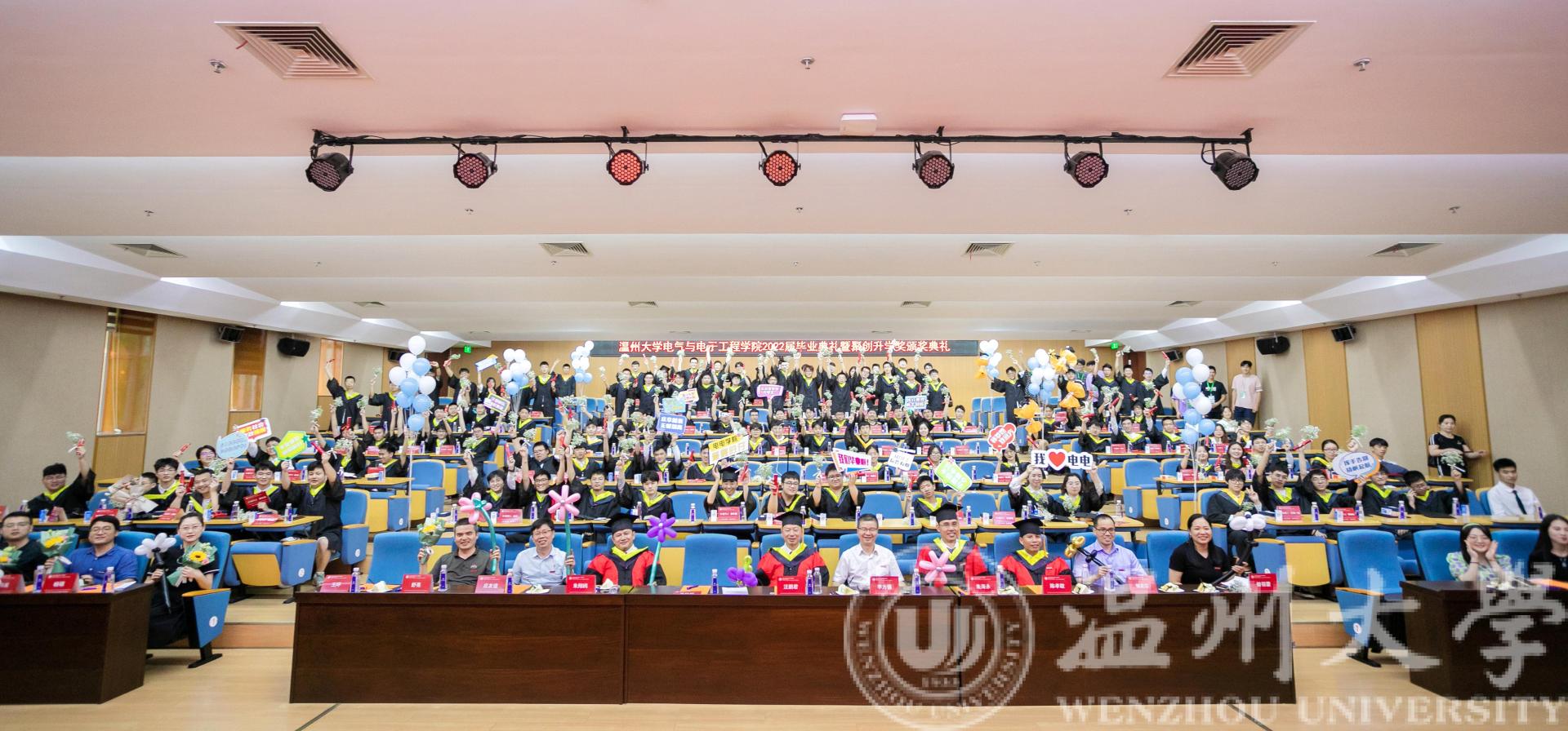 六月蝉鸣,盛夏别离,又到一年毕业季。6月21日下午14:45,MG冰球突破官网网站2022届毕业生毕业典礼暨第三届聚创奖学金颁奖典礼于MG冰球突破官网网站南校区岩松堂步青厅圆满举行。学院院长汪鹏君,党委书记李方强,副院长朱翔鸥、陈孝敬、朱海永,党委副书记曾蓓蕾,浙江聚创公司董事长、学院聚创奖学金发起人吴桂初教授,电气系党支部书记张正江,电子系系主任庄友谊,各毕业班班主任,各科室负责人,学工办全体辅导员,以及2022届本研毕业生出席本次毕业典礼。本次毕业典礼采用线上线下相结合的方式进行。