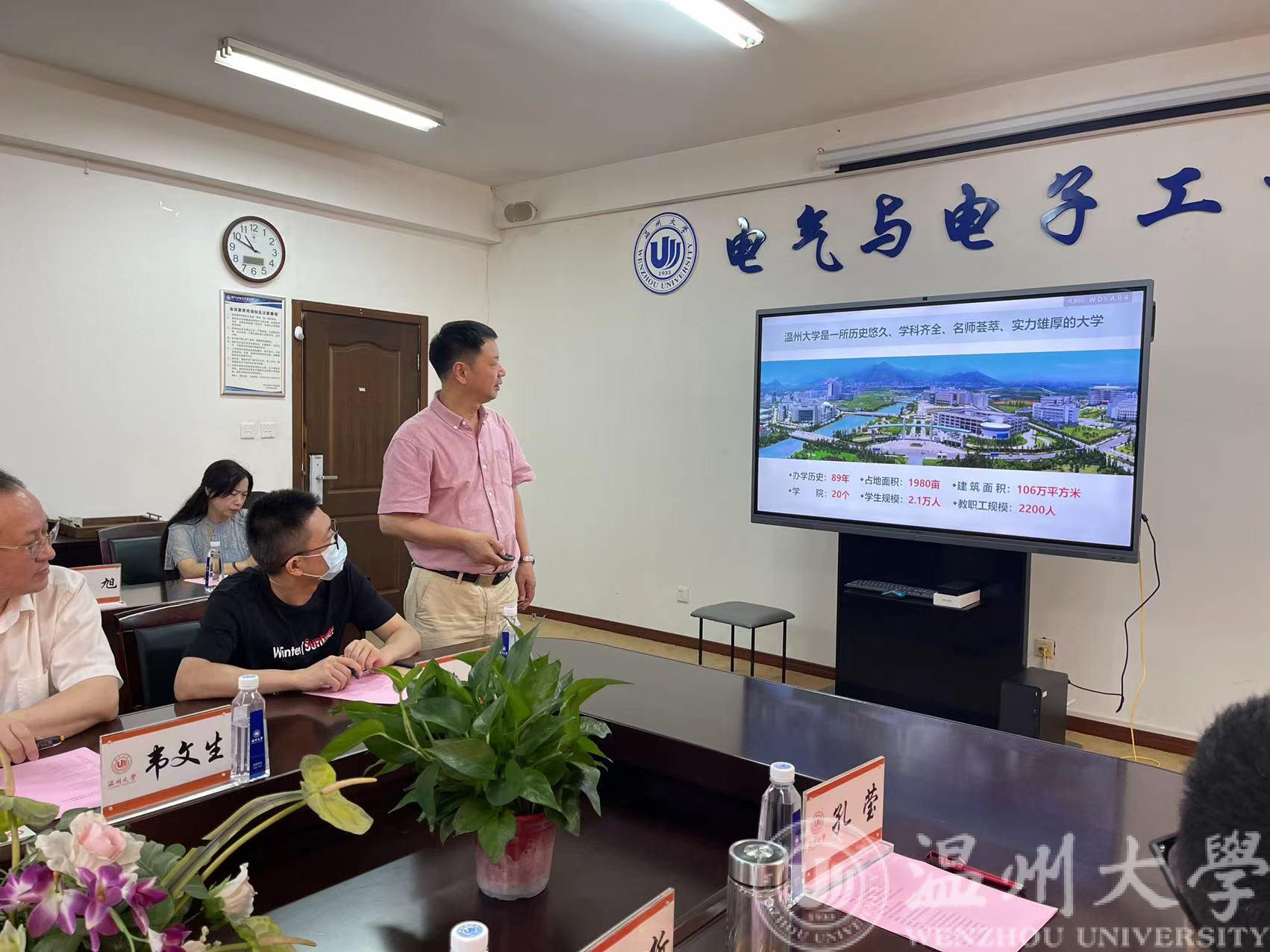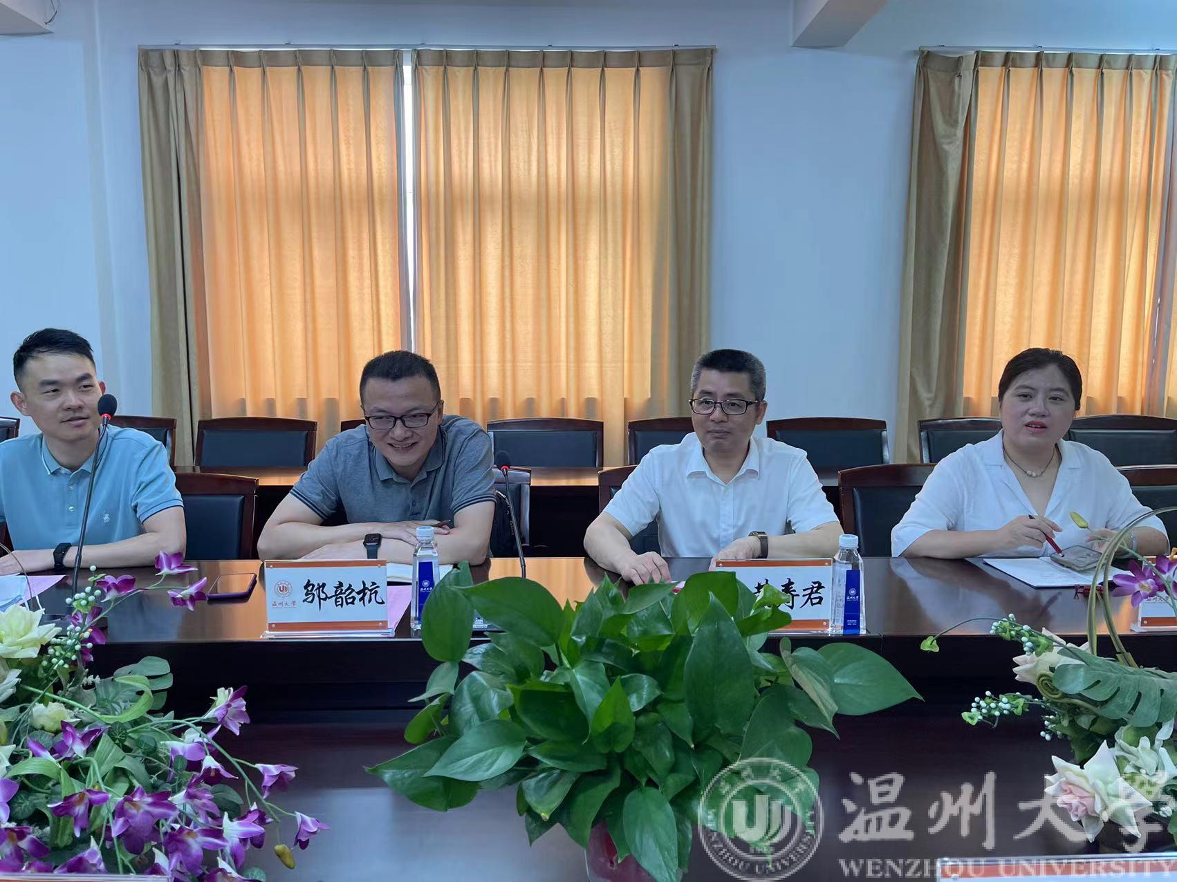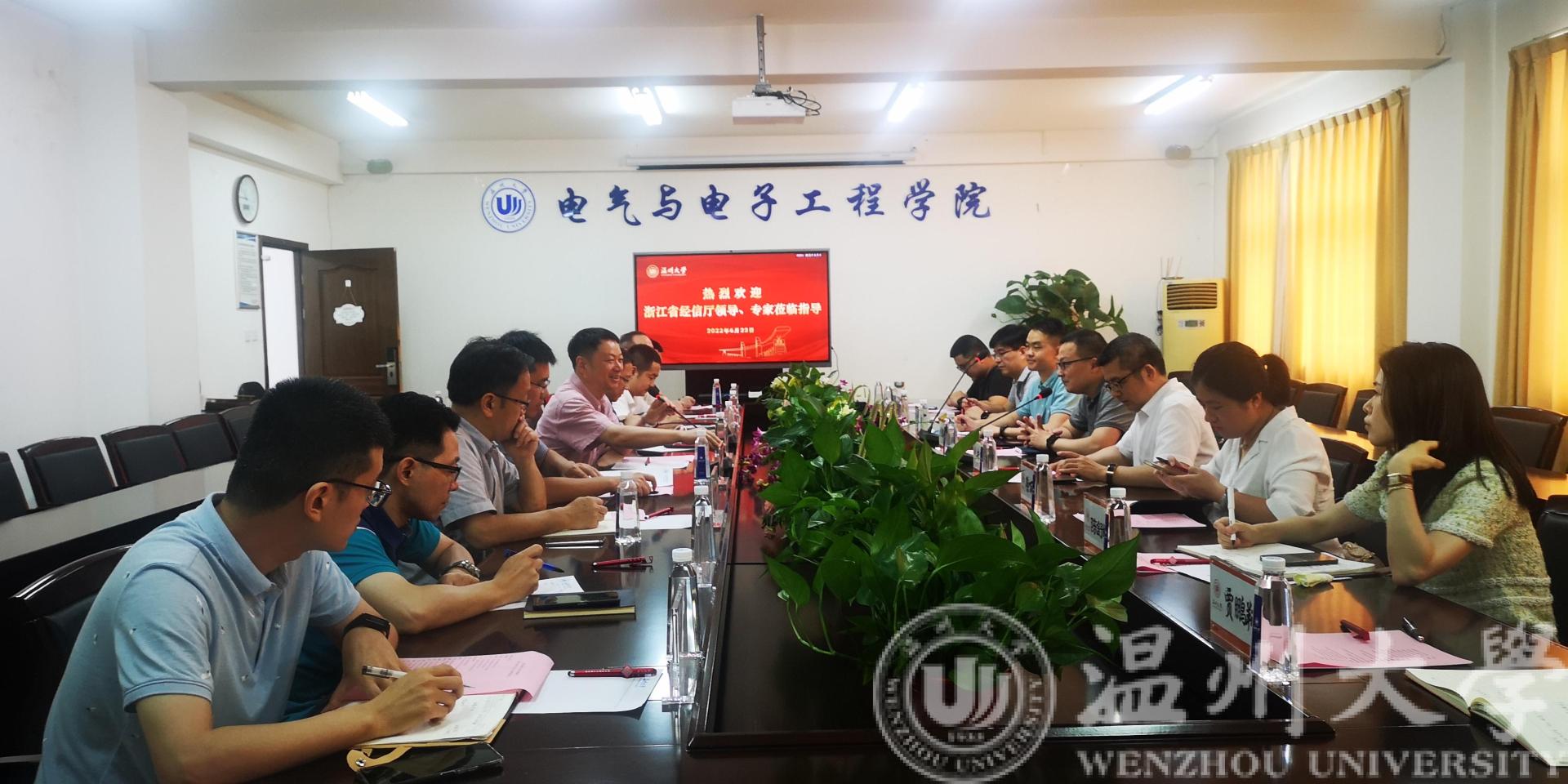6月22日上午,浙江省经信厅软件与集成电路产业处处长邬韶杭、二级主任科员寿伟帅,浙江省软件行业协会秘书长王小号等一行莅临MG冰球官网调研指导集成电路人才培养工作。温州市经信局副局长黄寿君,瓯海区经信局局长陈舒頔等领导陪同调研。我校MG冰球突破官网网站汪鹏君院长、科技处刘桂副处长及温州市数字经济研究院谷雨副院长、学院骨干教师等出席调研座谈会。