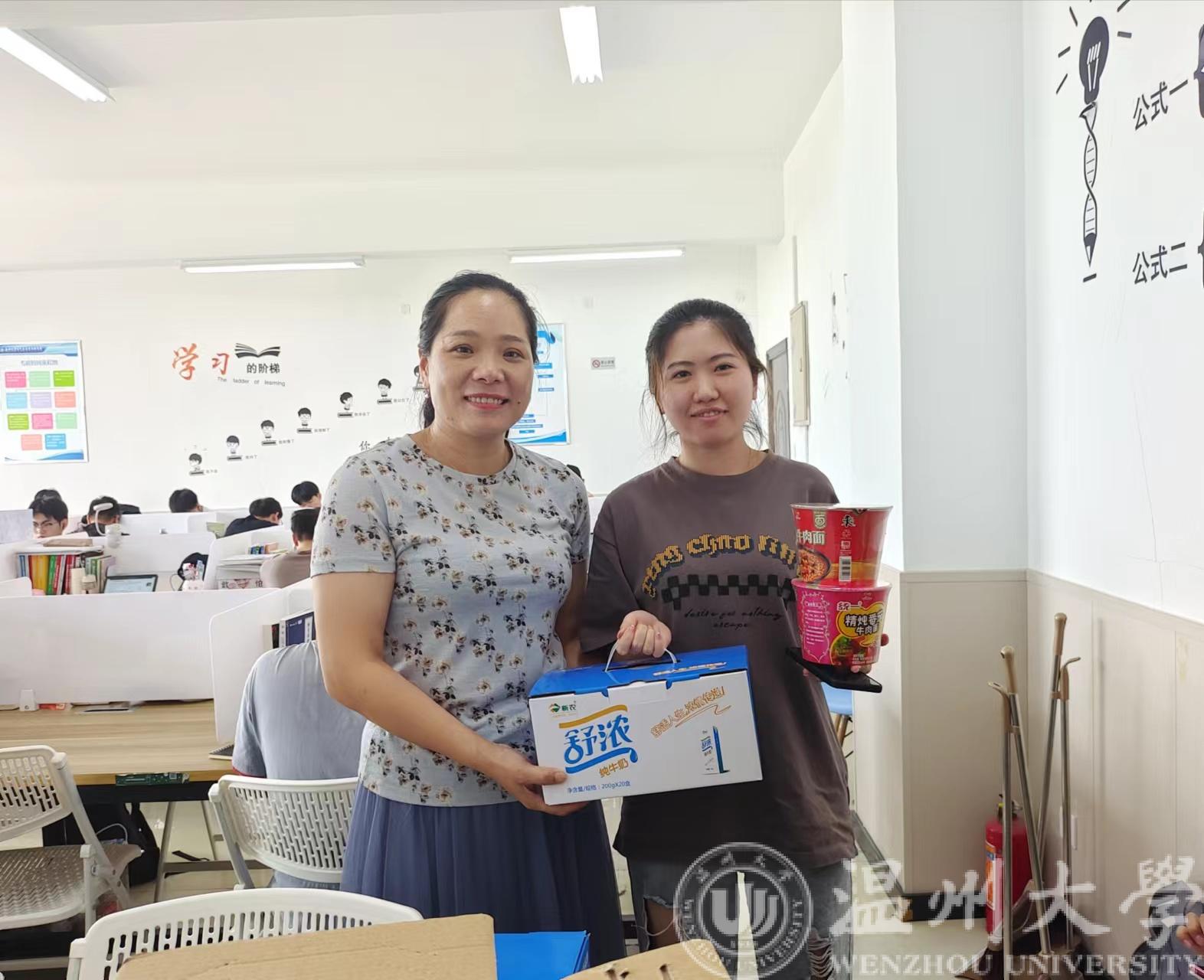 夏日炎炎,骄阳似火。暑期两个月是考研学子备考的关键阶段。为缓解考研学子学习压力,增强考研信心,7月5日上午MG冰球突破官网网站党委副书记曾蓓蕾、辅导员潘龙飞、陈海彤到学院考研自习室走访慰问暑期考研留校学生,并分发暑期考研慰问品。