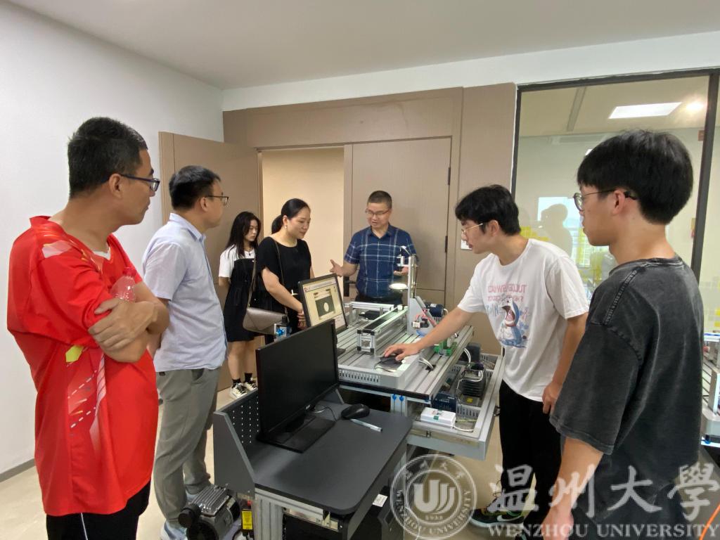 7月12日上午9:00,MG冰球突破官网网站云智立实践队在MG冰球突破官网网站科技综合大楼九楼进行AI科普教育。上午十点左右,学院党委书记李方强、学院党委副书记曾蓓蕾、辅导员潘龙飞和余明新老师来到实践地点,亲切慰问实践队成员。