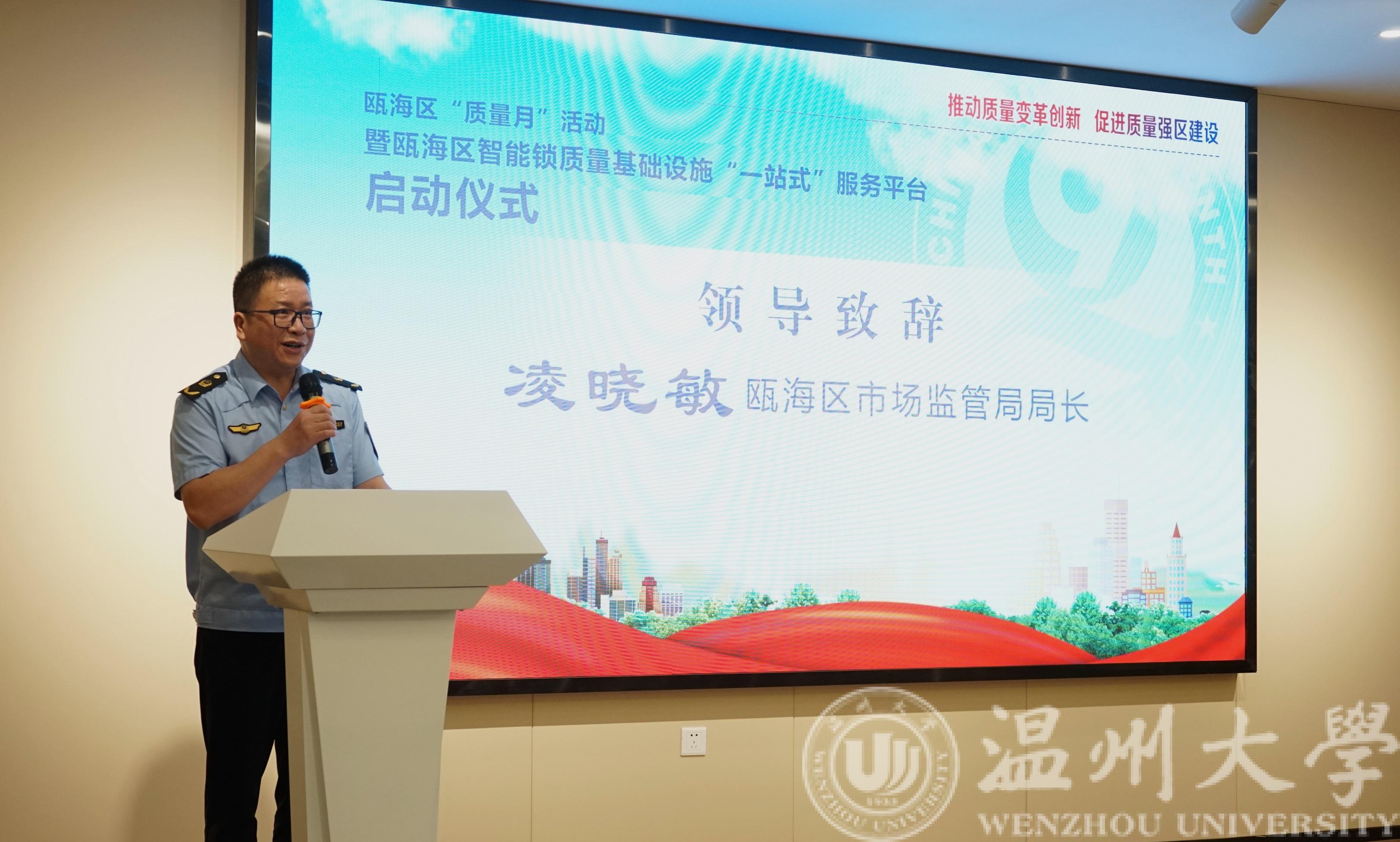 瓯海区市场监督管理局局长凌晓敏、副局长黄节棋,瓯海区科技局副局长周肖瑜,MG冰球突破官网网站智能锁具研究院院长阮秀凯,瓯海区智能安防产业协会会长詹显光、党支部书记郑国华出席仪式。