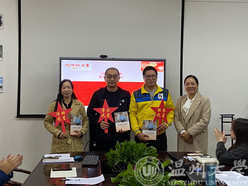 为鼓励和表彰优秀党员,经支委会讨论,支部每月评选学习之星、活动之星、服务之星各1名,并给予表彰。此次支部大会,对9月和10月评选出来的优秀党员给予了鼓励和表彰。