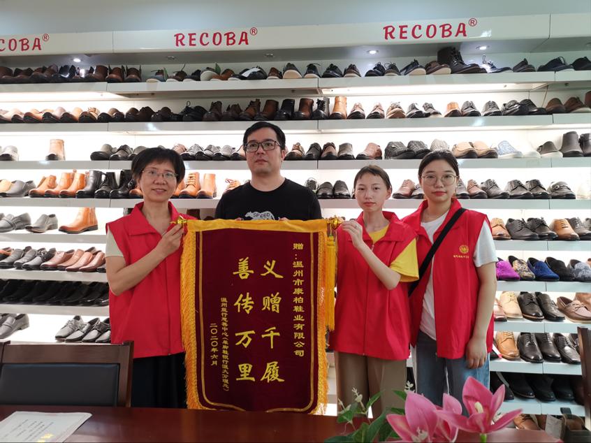 6月13日,MG冰球突破官网网站“缘来单脚鞋”项目组成员任奕沛、钟艺和温州一八二义工协会党支部书记朱阿姨,一同前往意万达鞋业有限公司、温州市康柏鞋业有限公司和温州市千金黎鞋业公司等六家知名鞋企,围绕如何提高赠鞋效率和服务质量进行了深切的交流,并赠送锦旗和证书,对他们的赠鞋义举表示感谢。