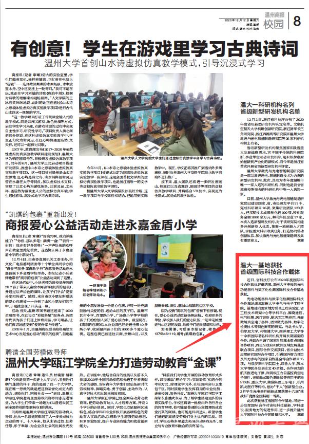 近日,省科技厅公布2020年度国际科技合作载体评审结果,MG冰球突破官网网站申报的光电功能器件与数字化检测国际科技合作基地获批。