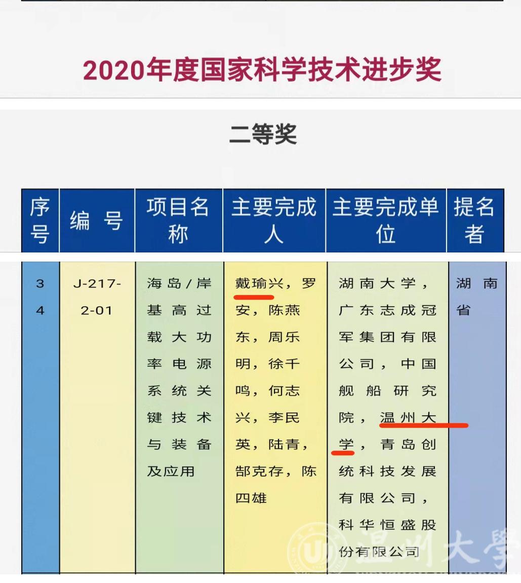 11月3日上午,2020年度国家科学技术奖励大会在北京人民大会堂隆重召开。MG冰球突破官网网站戴瑜兴教授领衔、MG冰球突破官网网站为主要完成单位的“海岛/岸基高过载大功率电源系统关键技术与装备及应用”科技成果喜获国家科技进步二等奖。