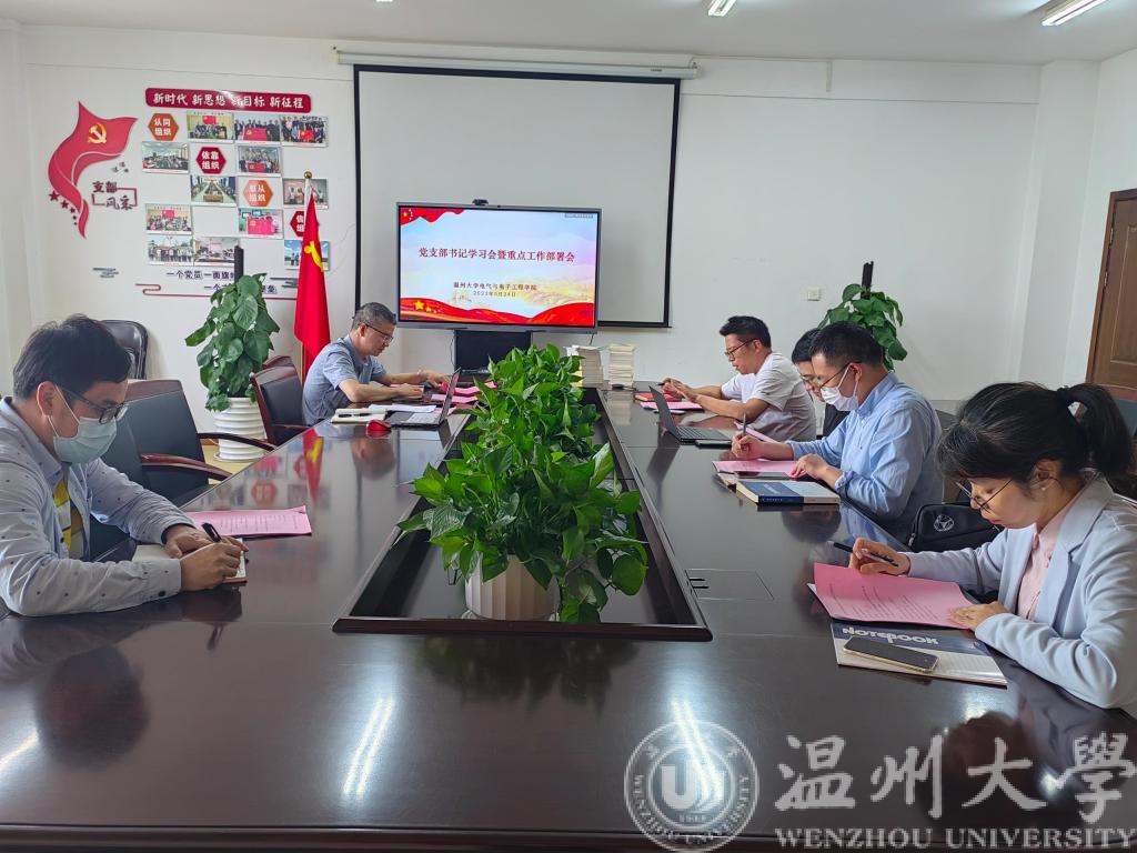 会上,李方强书记传达了5月23日校党委理论学习中心组学习会的精神,领学了习近平总书记关于调查研究的重要论述和关于数字经济的重要论述。要求各支部积极开展“大走访大调研”活动,要“走出去”学经验,“引起来”促发展,以专业、学科、平台为单元实地调研全国同类院校、相关企业,对接温州相关行业、企业,积极为提升学院办学水平、促进地方发展作贡献。